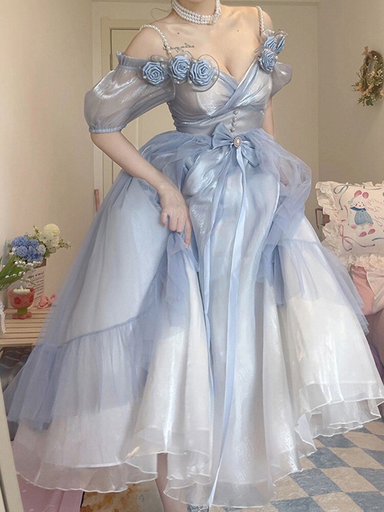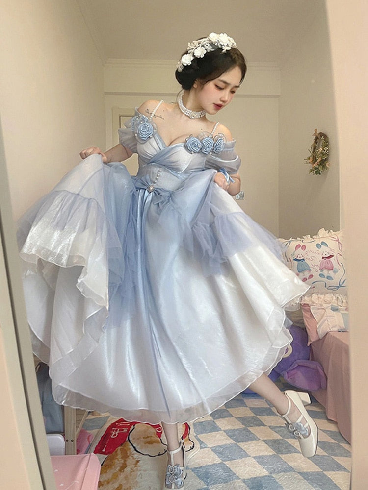 Flower Wedding Lolita Dress Light Gradient Blue Rose Fairy Princess Kawaii Sweet Elegant Lolitas Tea Party Dresses Victorian
