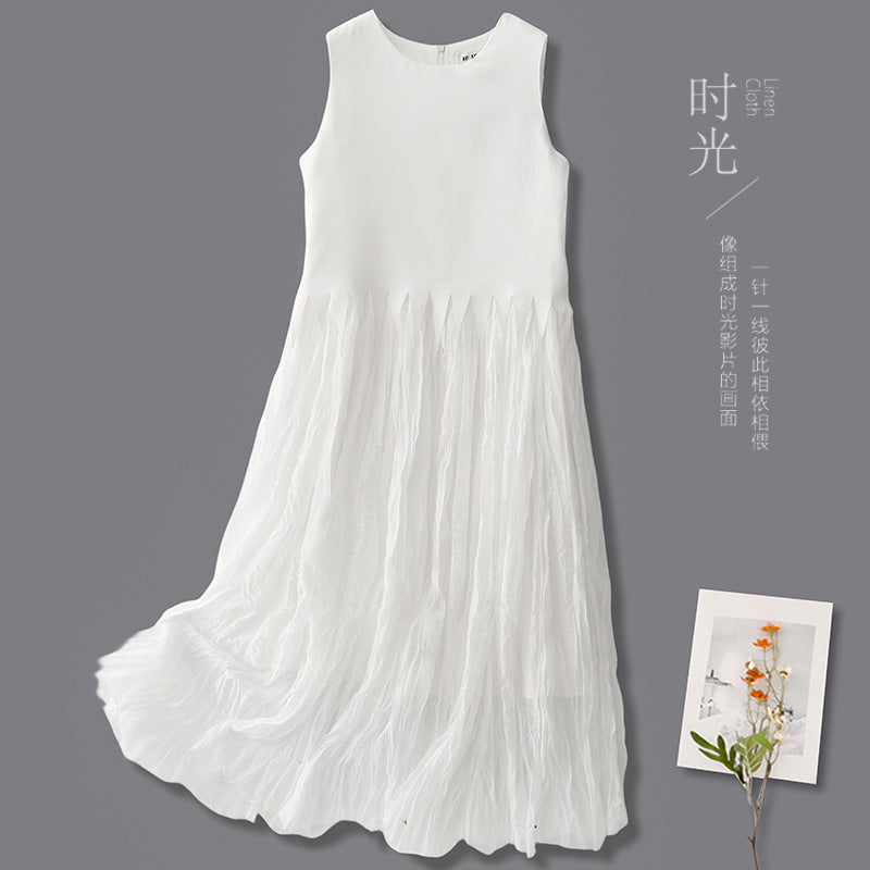 High-end temperament white sleeveless vest skirt travel dress female summer seaside vacation super fairy long dress