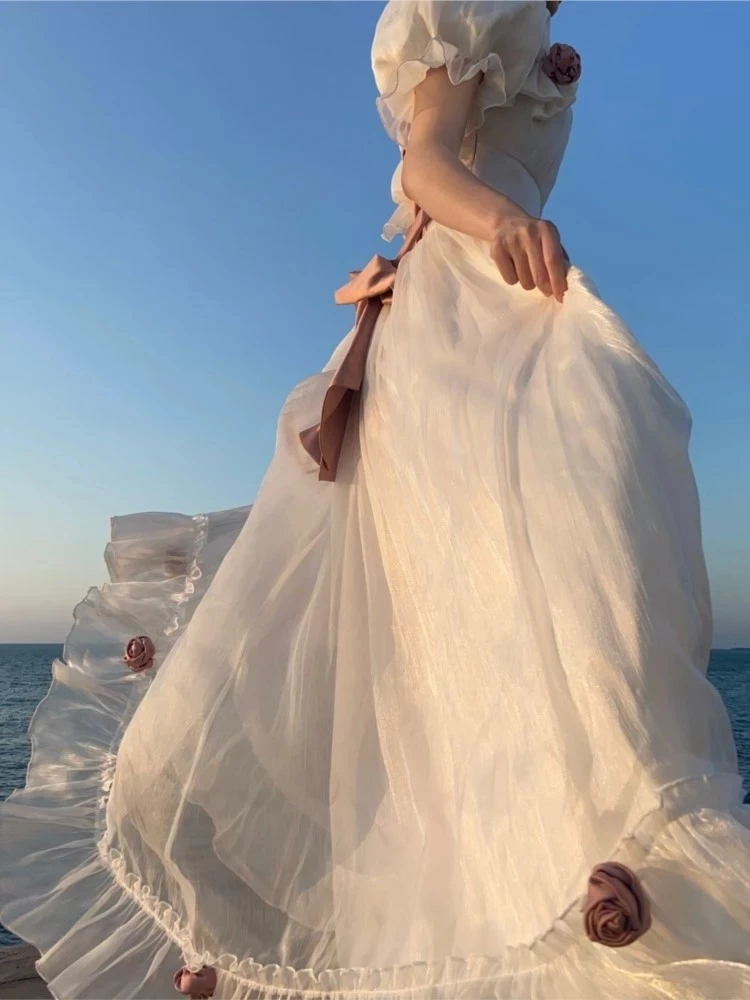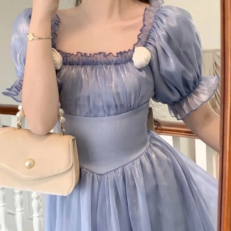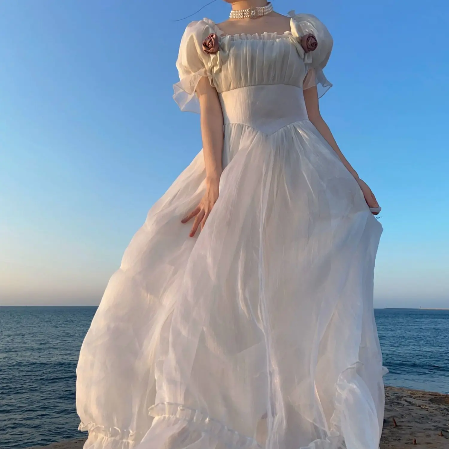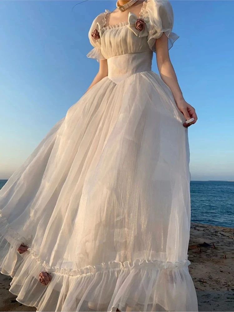 France Fairy Sweet Dress Women Vintage Evening Party Midi Dresses Casual Designer Chic Princess Retro White Dress
