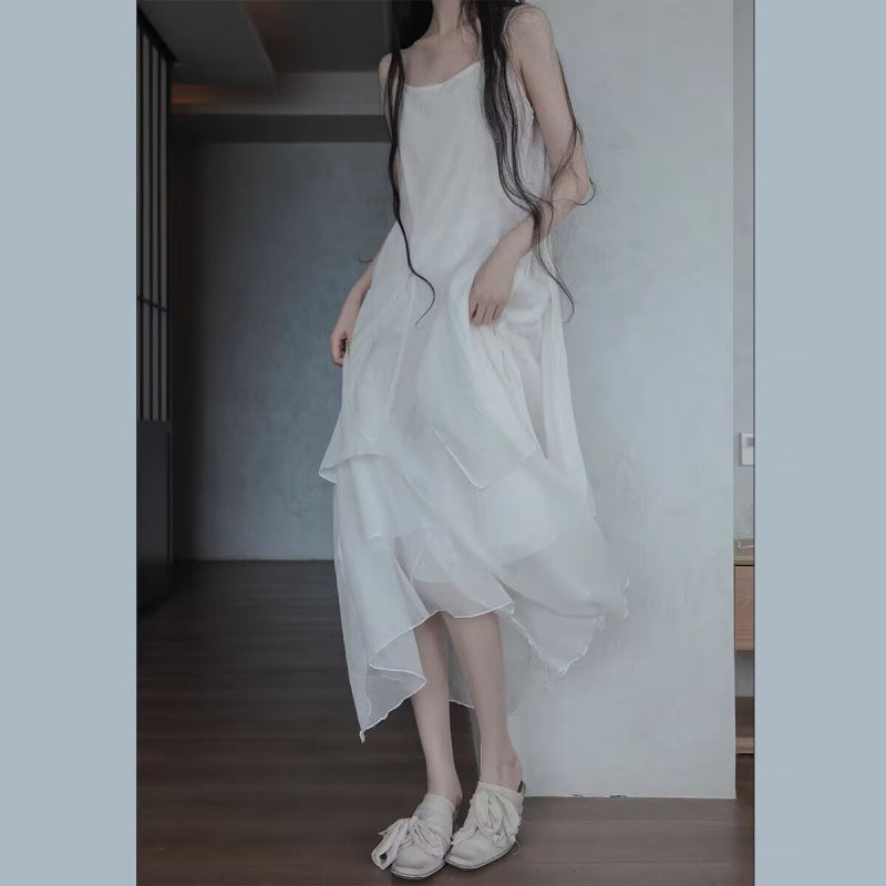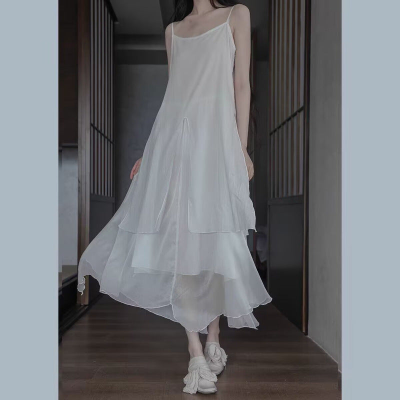 Long irregular double-layer elegant dress summer new solid color fairy style simple loose dress
