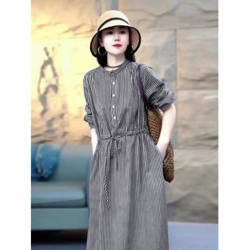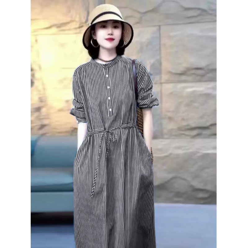 new women's clothing high-end royal sister style thin belly and age-reducing temperament striped shirt and dress