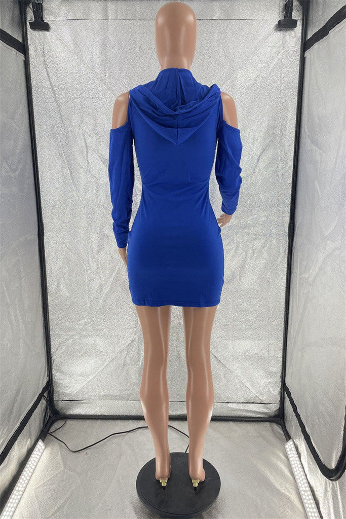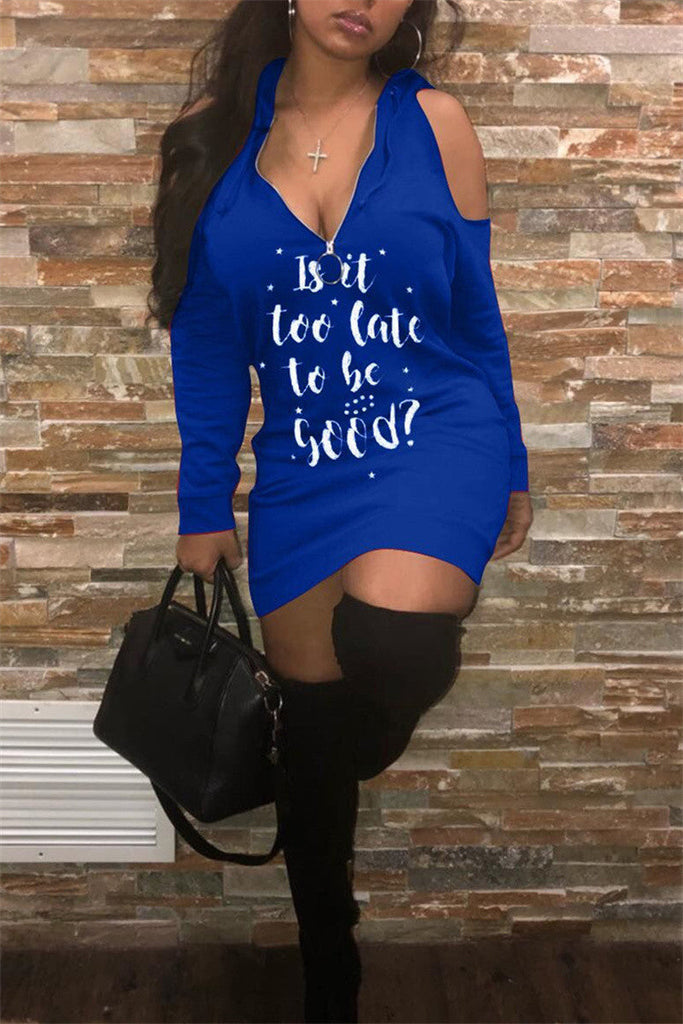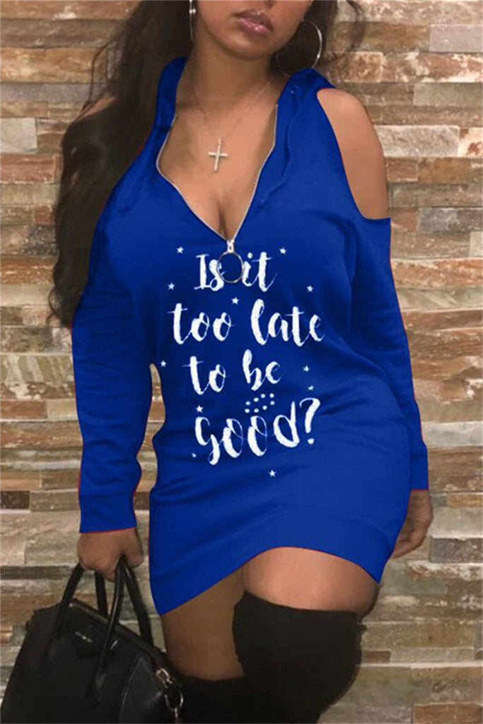 Tag Fashion Print Polyester Long Sleeve Casual Letter Mini HOLLOWED OUT Positioning Print Hooded Collar Cold Shoulder