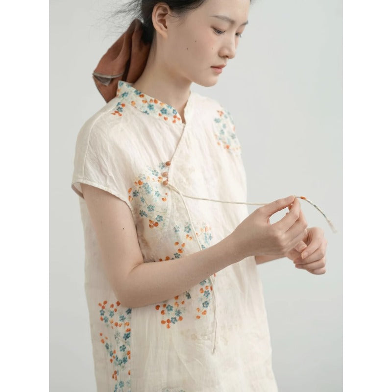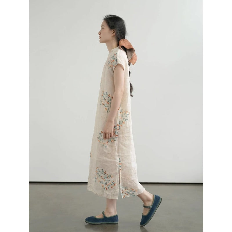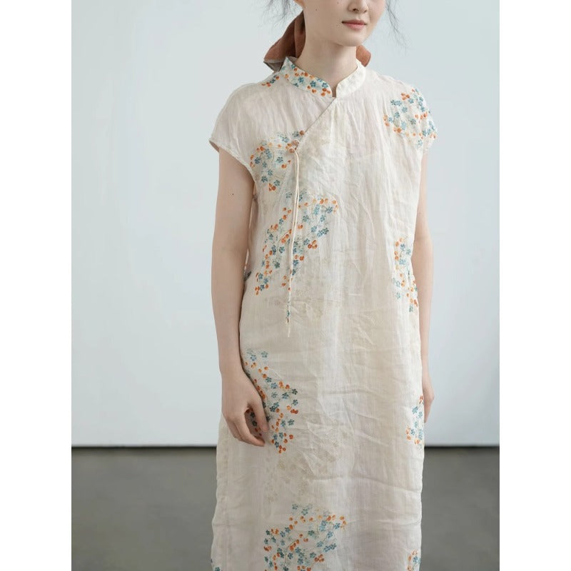 Summer Chinese Zen digital printing stand-up collar cheongsam, Zen slim straight dress