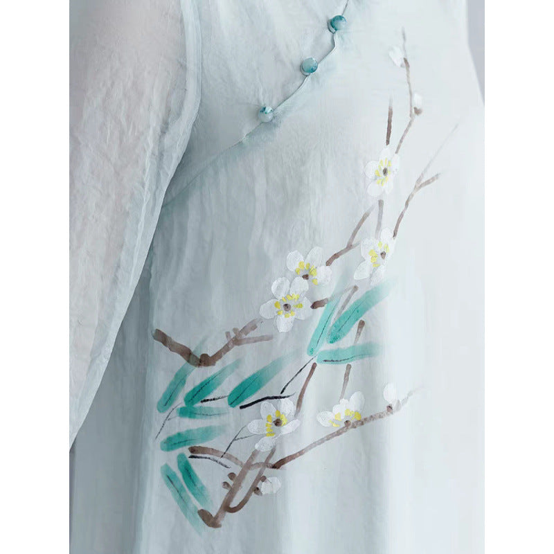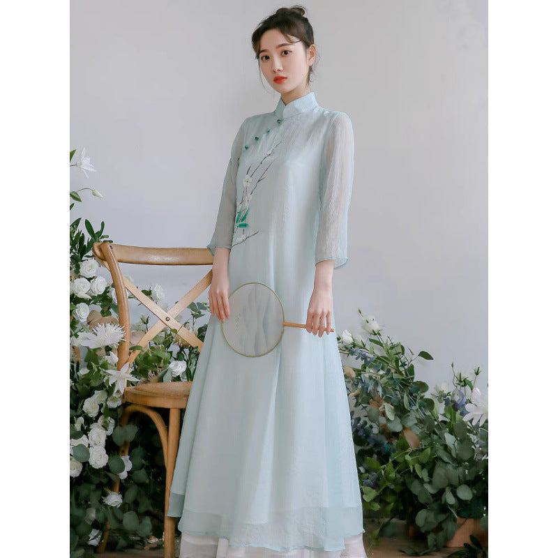 Tea Clothing Women's Improved Hanfu Tang Clothing Tea Art New Chinese Women's Clothing Chinese Ancient Style Chan Clothing Cheongsam Zen Dress