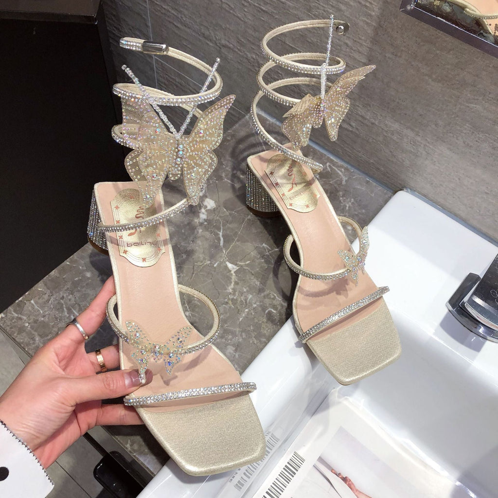 woloong Women's High Summer All-matching Chunky Fairy Style Bow Heels