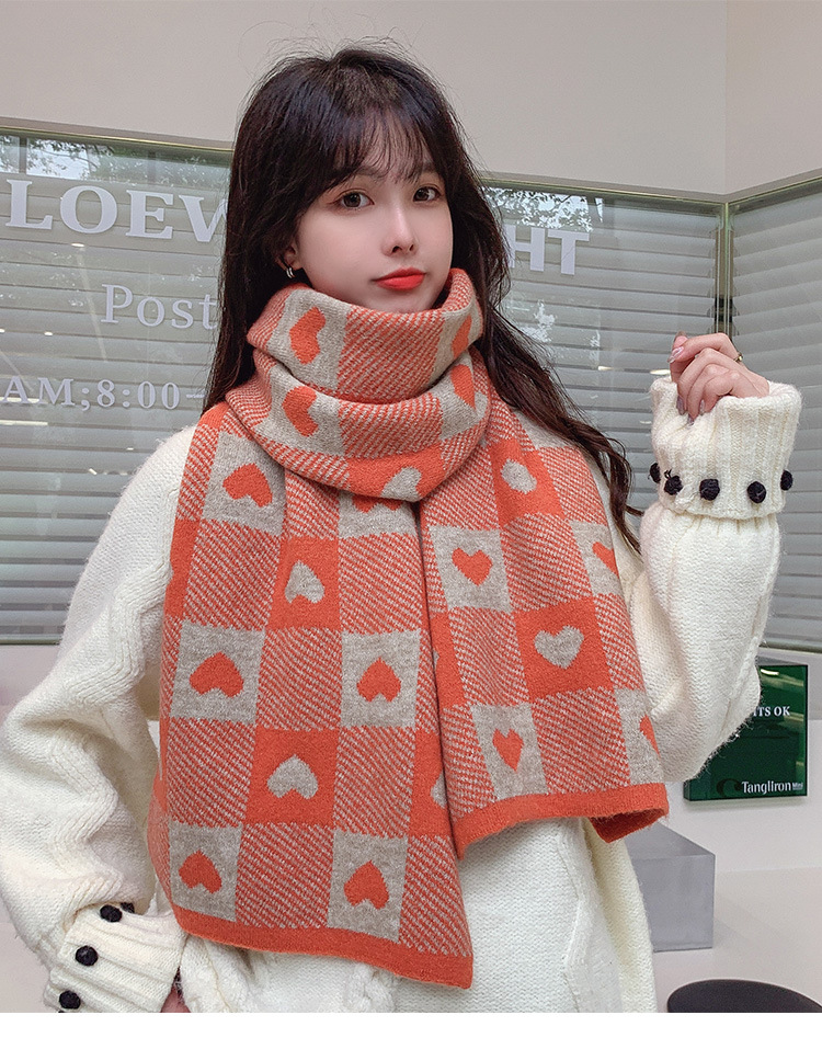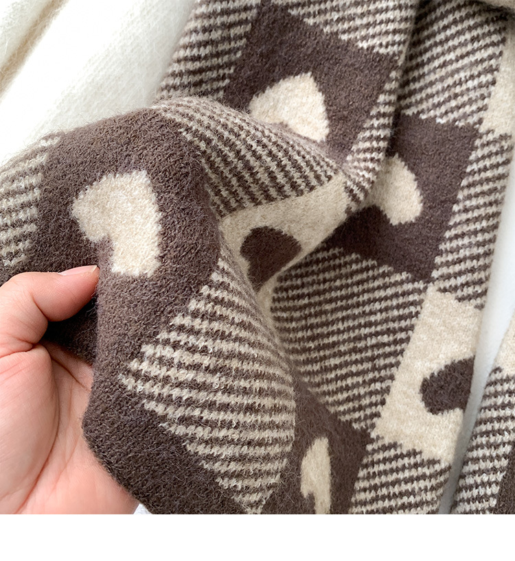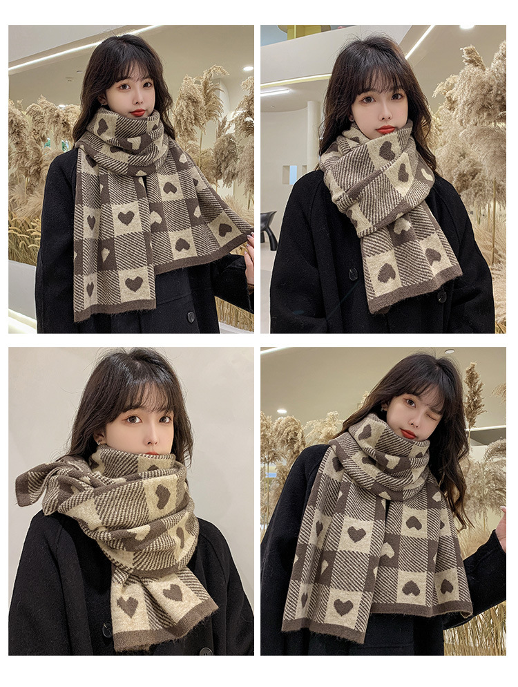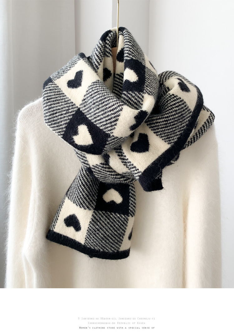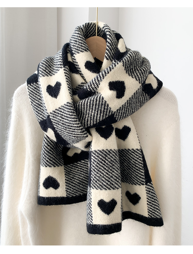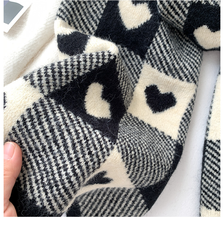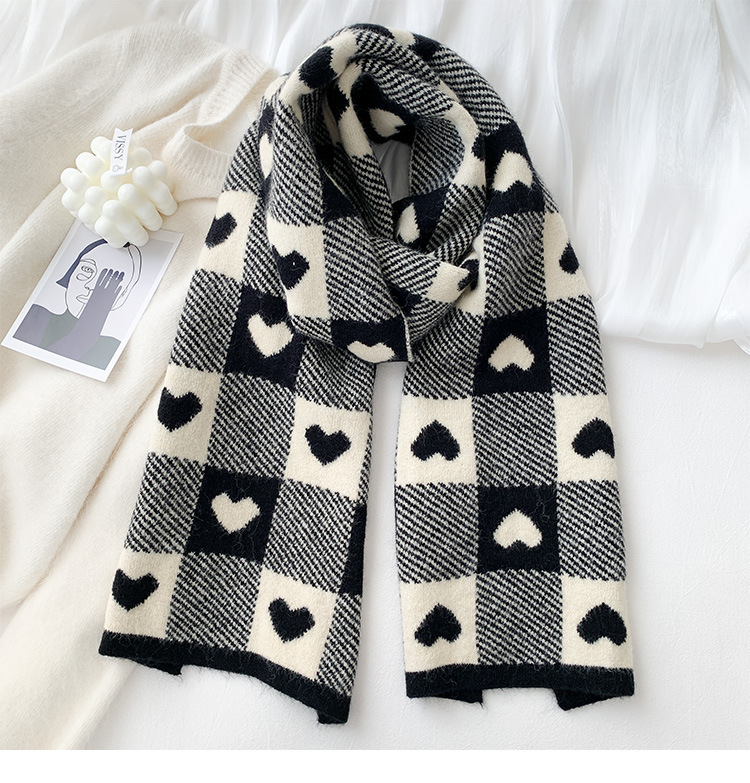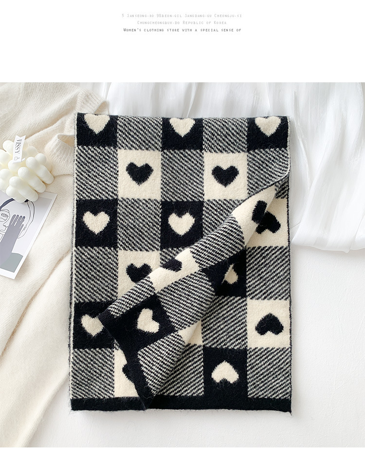 Knitted Scarf Love Heart Scarf Black White Plaid Scarf Thickened Warm Winter Women's Scarves Christmas New Year Gifts Black