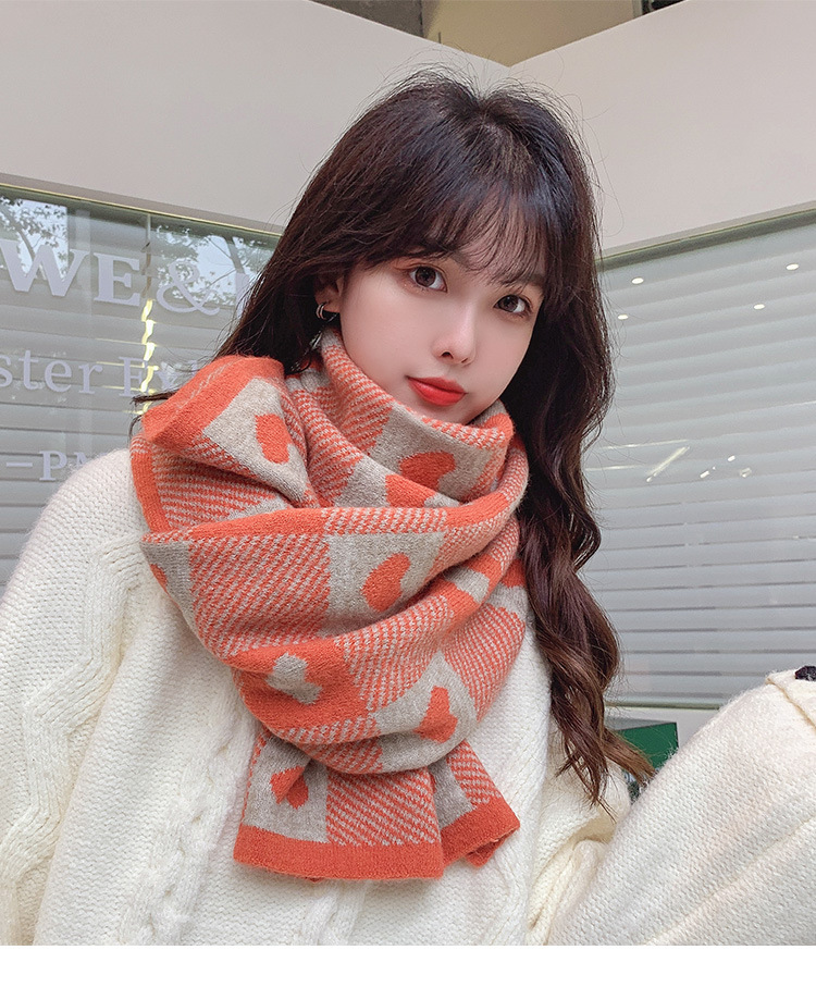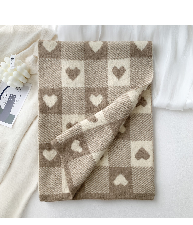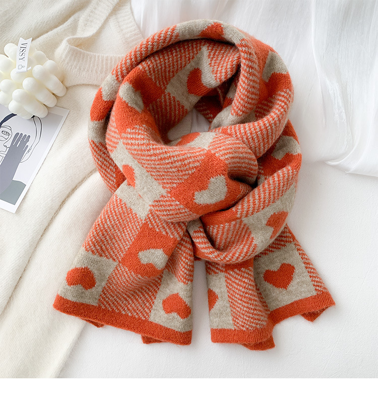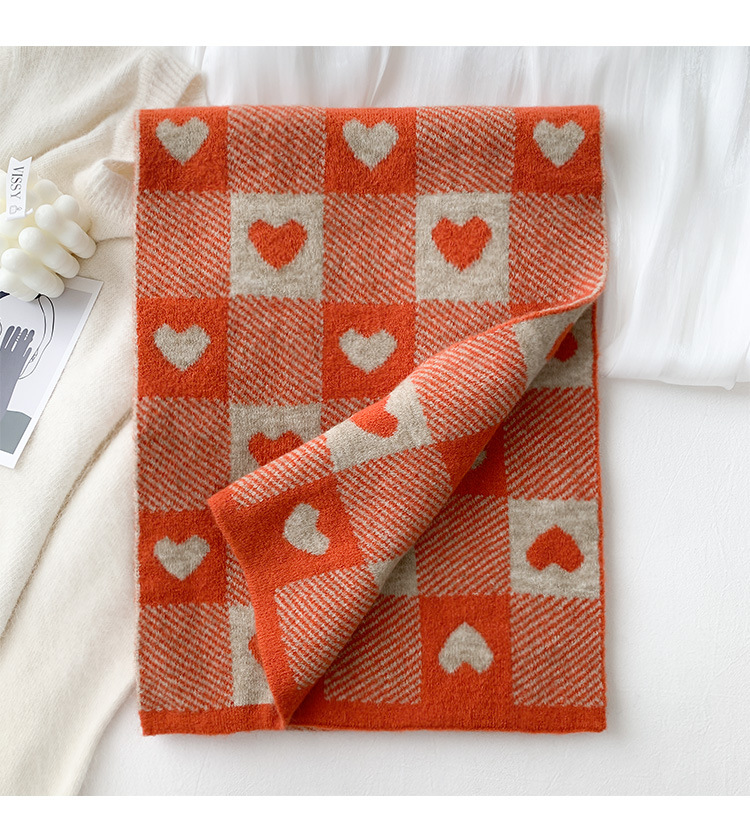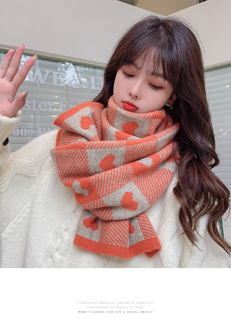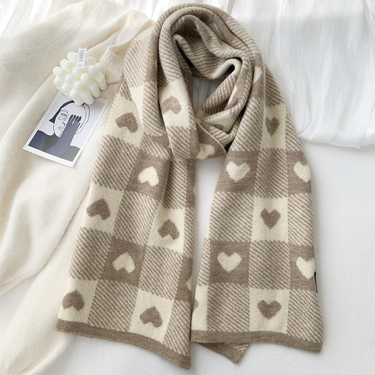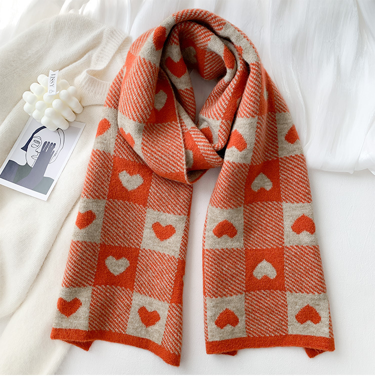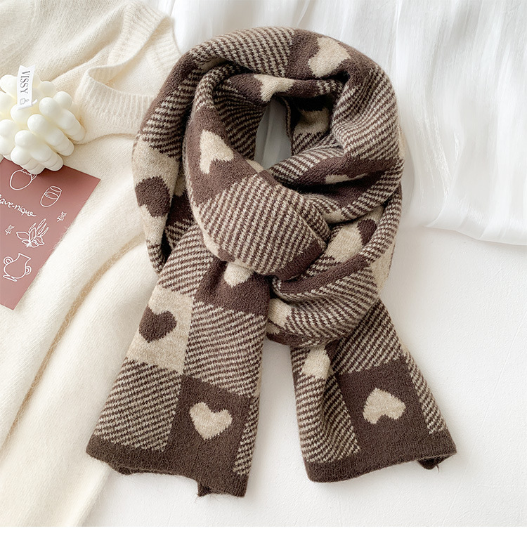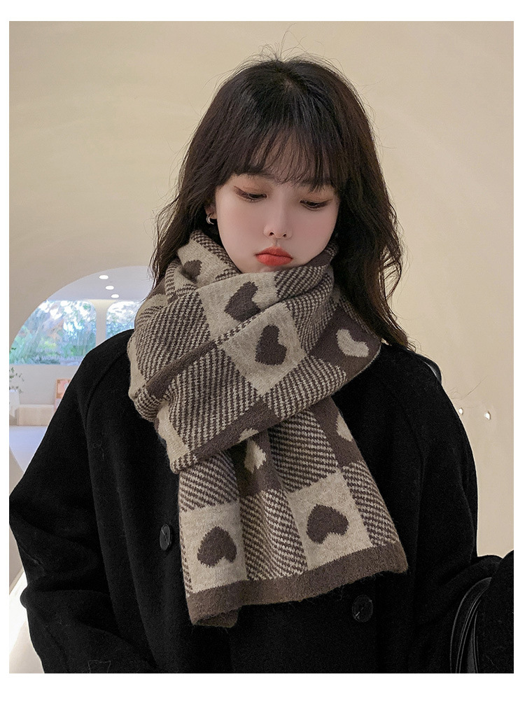 Knitted Scarf Love Heart Scarf Black White Plaid Scarf Thickened Warm Winter Women's Scarves Christmas New Year Gifts Black