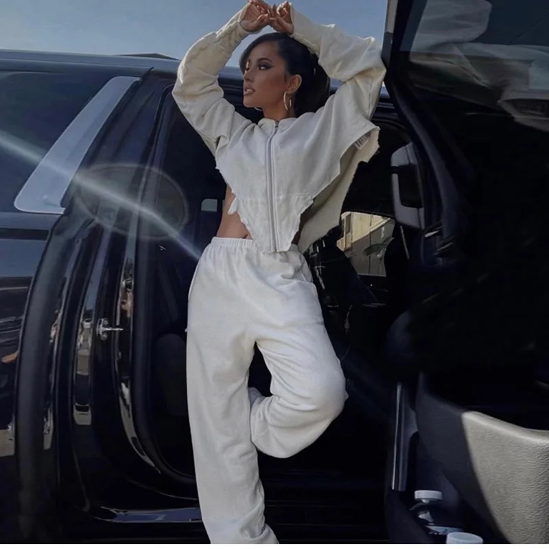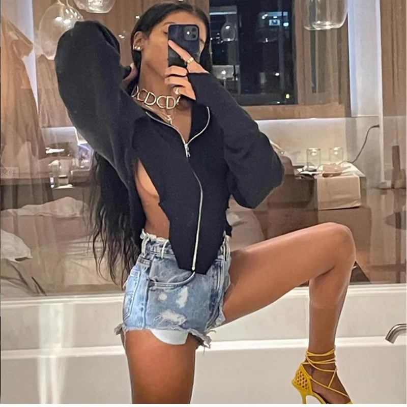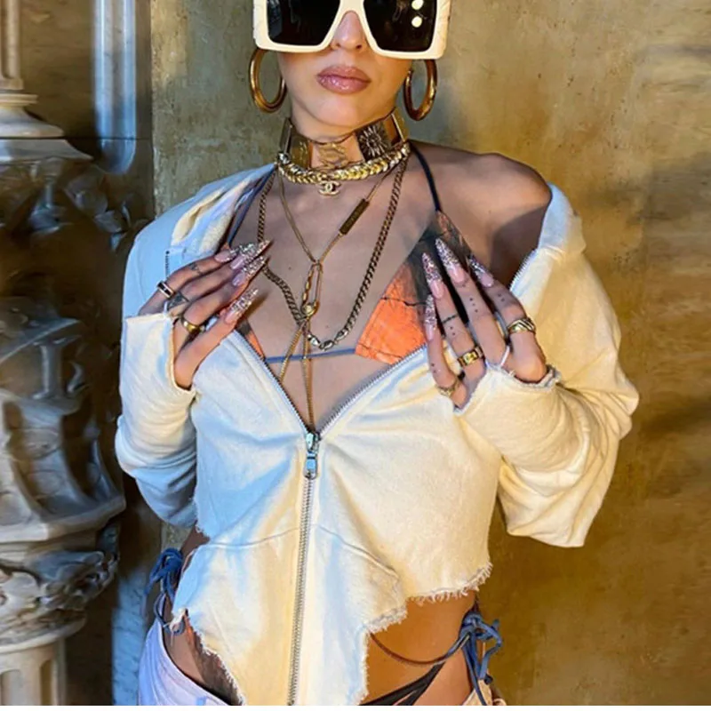 Sexy Cropped Zip Up Hoodie Women Hip Hop Ripped Oversized Hoodie Sweatshirt Long Sleeve Hooded Sweatshirt Streetwear Jacket