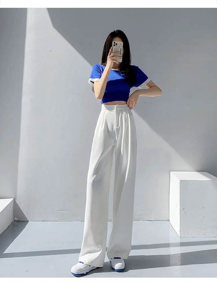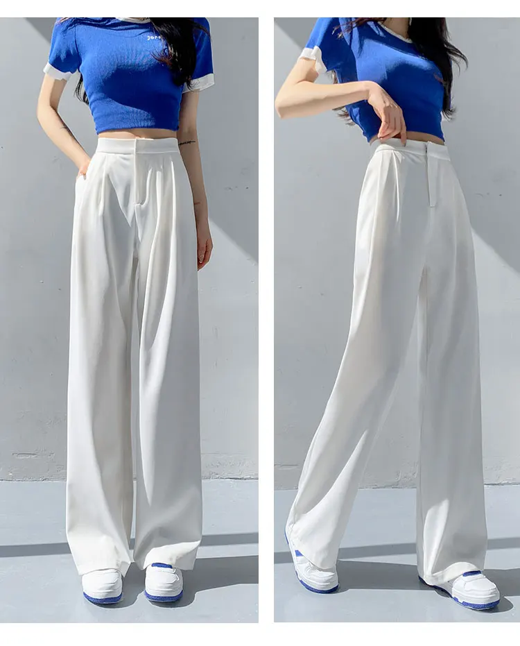 Retro Solid Color Wild Straight Wide Leg Pants Female Spring New Korean Fashion High Waist Casual Long Pants