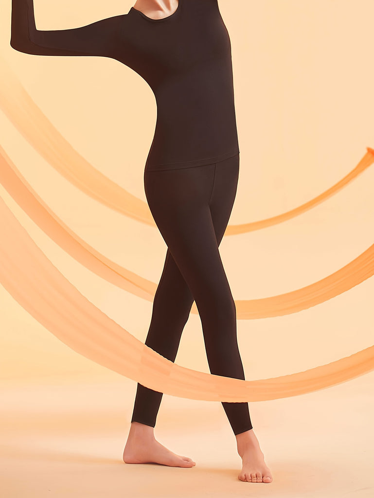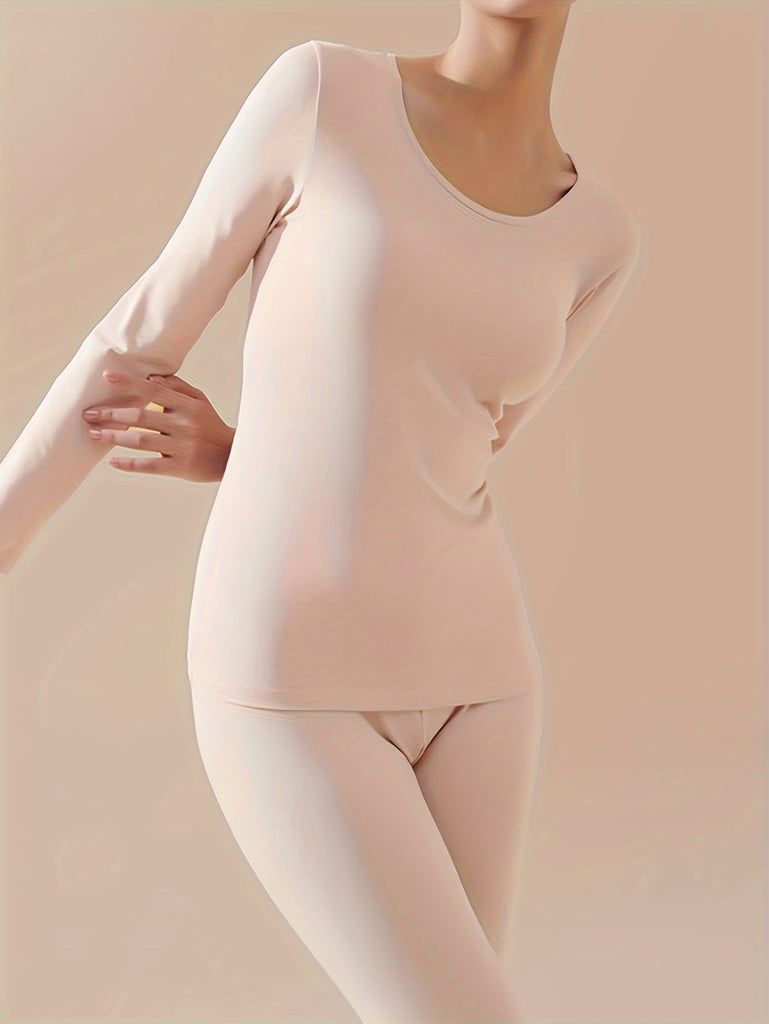 Women's Soft Cotton Blend Thermal Underwear Set - Crew Neck Long Sleeve Top & Pants, Stretchy Slim Fit Loungewear, Solid Color, No-Pad Comfort Base Layer Pajama Set for Fall/Winter